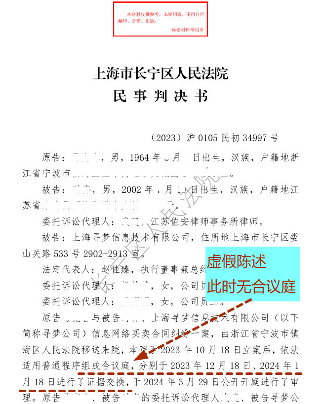 四、《判决书》与《笔录》中的虚假陈述 【证据4】《判决书》 《判决书》第1页:本院于2023年10月18日立案后,依法适用普通程序组成合议庭,分别于2023年12月18日、2024年1月18日进行了证据交换,于2024年3月29日公开开庭进行了审理。 为什么要说合议庭组成于证据交换之前——明知违法审案,掩盖事实。