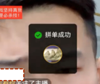 “断片” 后段录屏(2329-32分)【证据b12】《判决书》未引用,其开头显示“拼单成功”图标,说明断片中被告说完“假一赔三”后,原告有订单“拼单成功”。